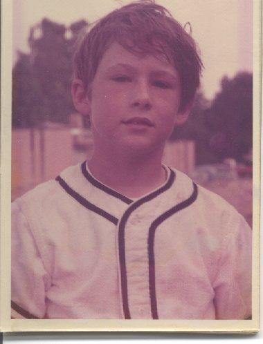 I happen to think this is one of the coolest pictures ever taken of me. I can still remember the how and when of this picture. Every year the little league would have a photographer come to the fields and take team and individual player picures. Usually this would happen before the game. But something happened to this guy to make him run late. So we didn't get our pictures done until after the game.